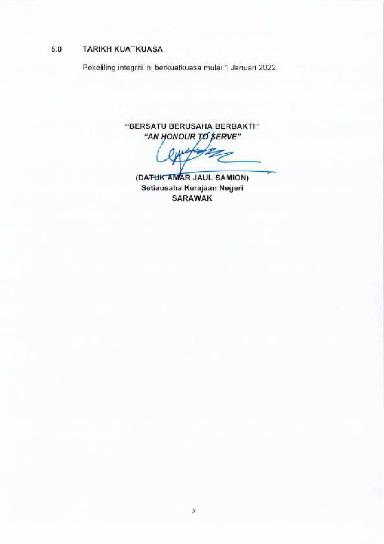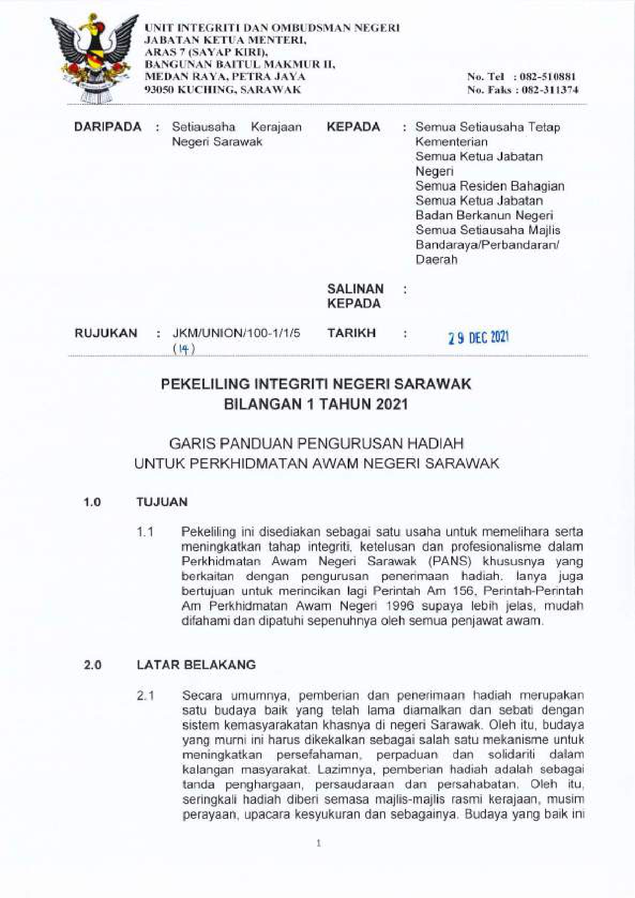 Sarawak State Integrity Circular